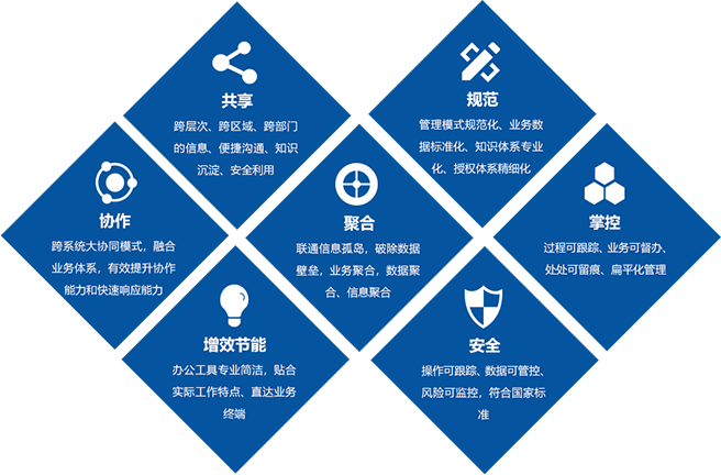 以云计算、大数据、移动互联等新技术,通过业务聚合、数据聚合和信息聚合,融合个人办公、公文管理、会议管理、流程审批、信息采编、督查督办、建议提案、集CA、大数据图表等应用于一体的智慧政务办公平台系统。简化操作流程,实现了互联互通、信息共享和智能办公。